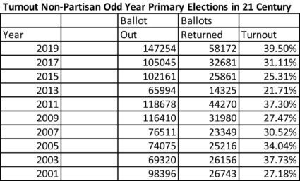The August 6 Primary Election had the best turnout for a non partisan odd year election in the 21st Century.