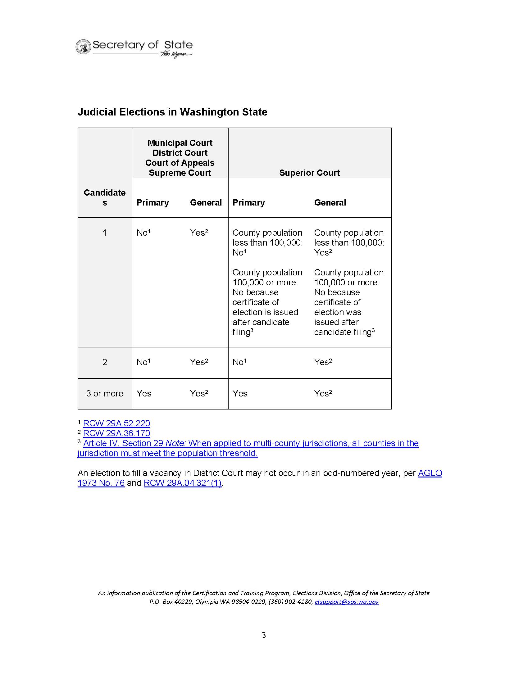 The following rules apply for the “election” of judges according to the Revised Code of Washington (RCW)