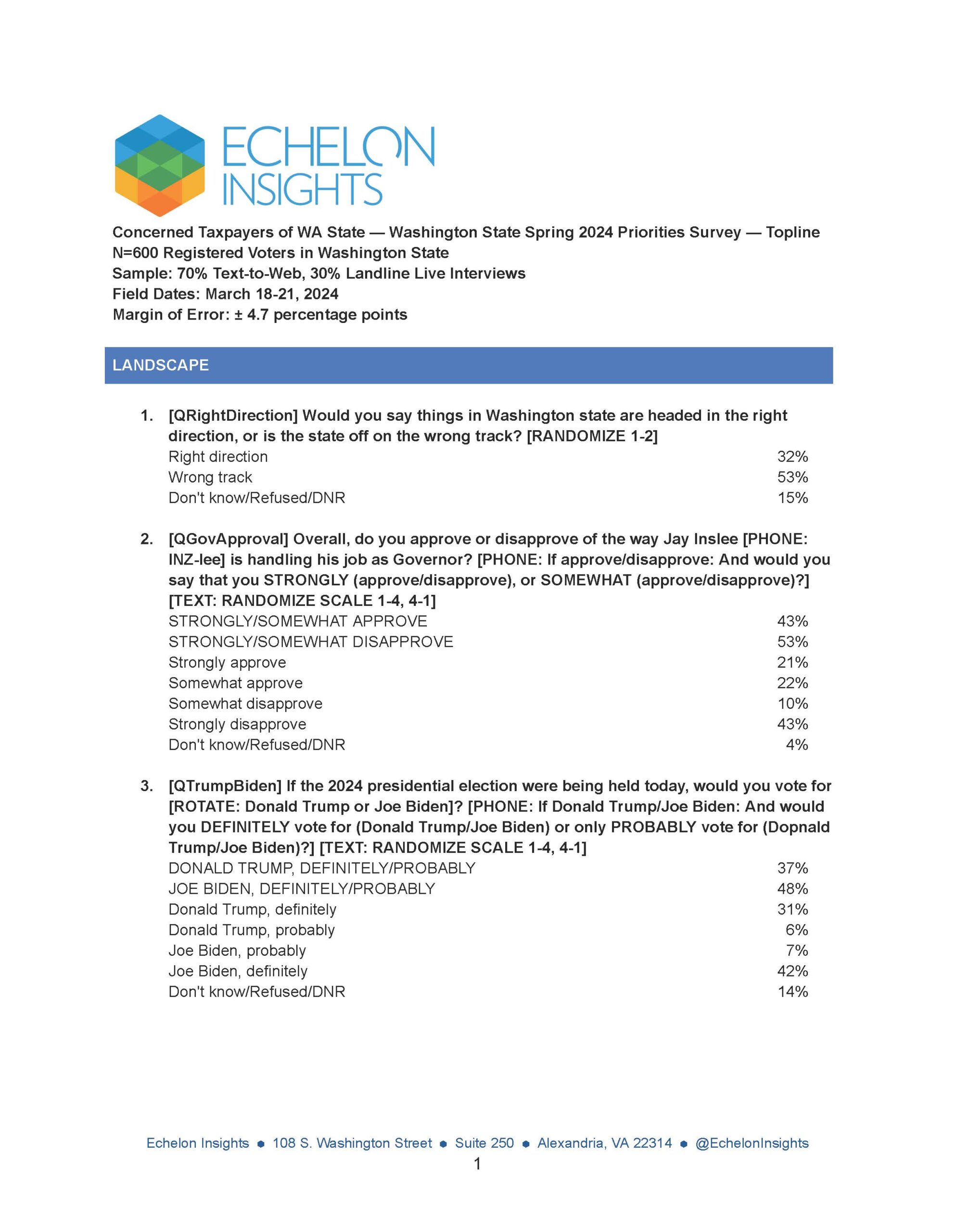 HERE IS THE KEY DATA OF MARCH 2024 POLL IN THE STATE OF WASHINGTON
