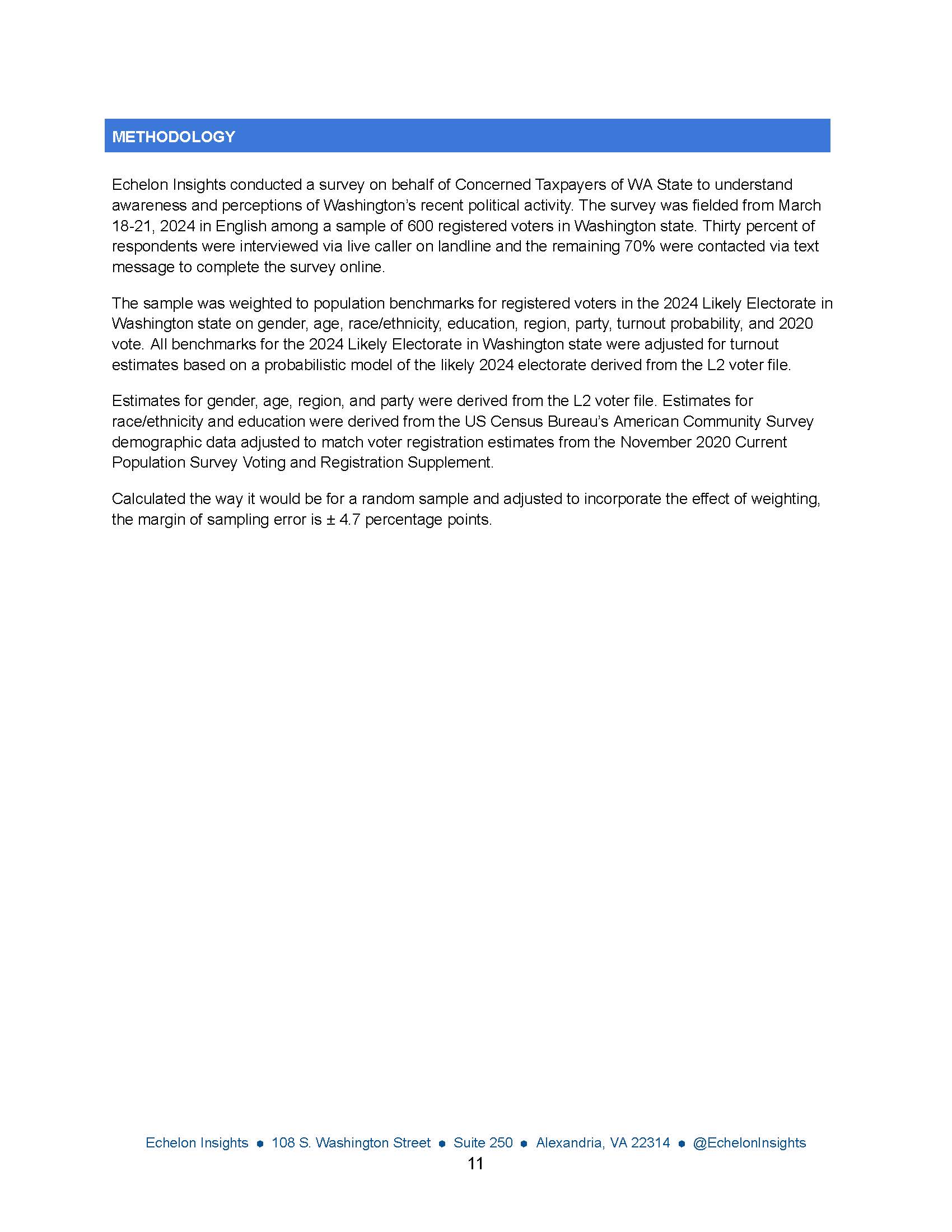 Echelon Insights conducted a survey on behalf of Concerned Taxpayers of WA State to understand