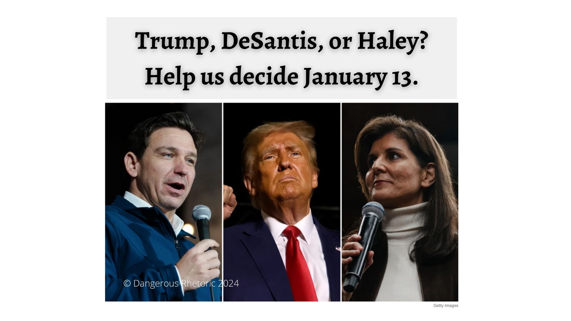 So far in our state, three Republican candidates have qualified to be on our presidential ballot: Nikki Haley, Ron DeSantis, and Donald Trump.You can support your favorite presidential candidate IN PERSON at your county’s Republican Caucus on Saturday, Jan. 13. On this date from 10 a.m. to 12 p.m., Republicans in each county will gather to caucus about the presidential candidates and important issues. Be sure to arrive early so you can get checked-in by the 10 a.m. start.