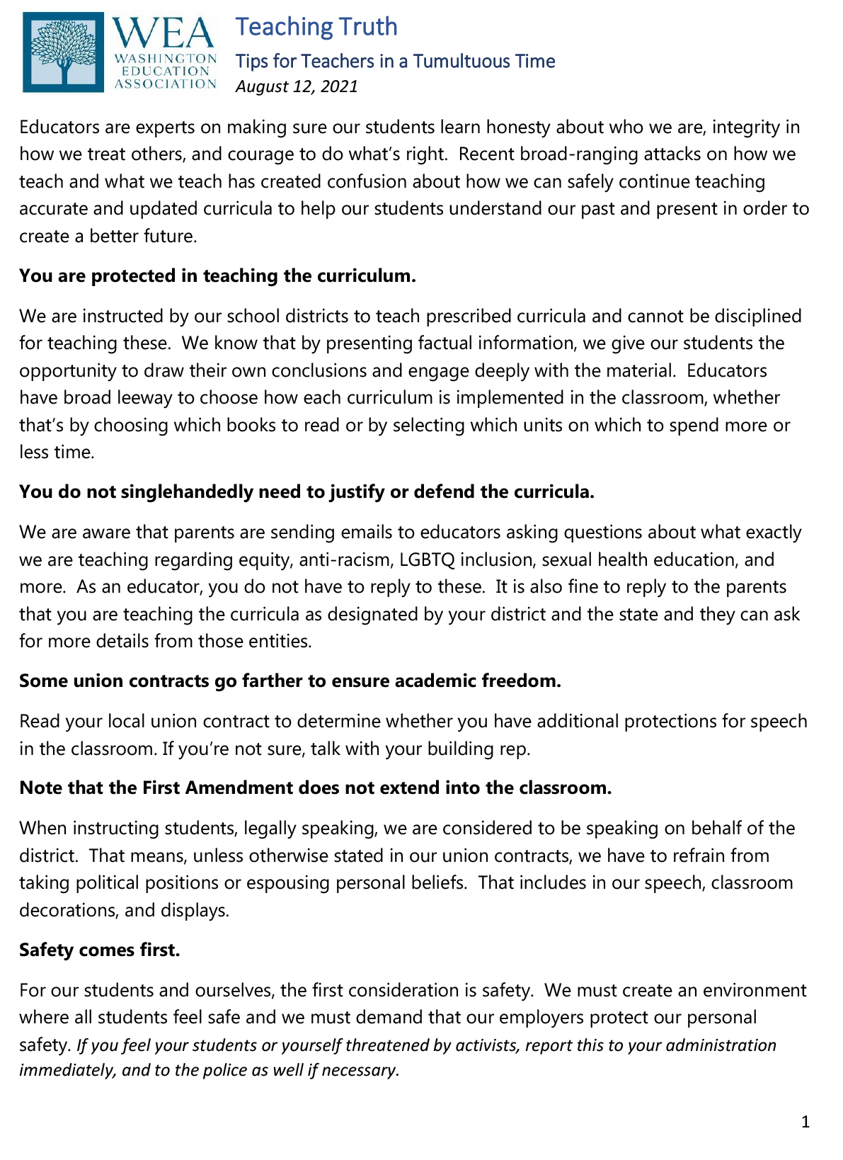 Samples from the “Teaching truth educator FAQ” document of August 12th.